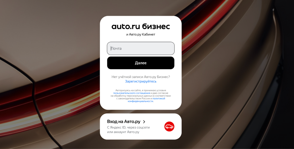Еще нет кабинета? Не беда! Заходим сюда: https://auth.auto.ru/business/login/