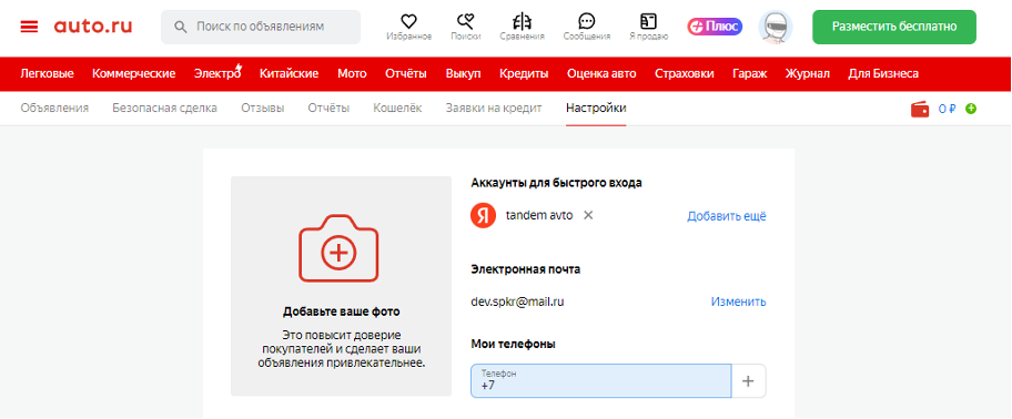 Вуаля — почта привязана! Чтобы проверить, зайдите в личный кабинет и справа вверху кликните на настройки учетки на Авто.ру.