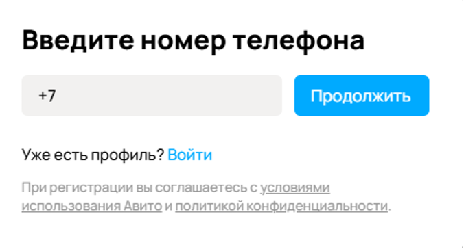 Для регистрации на Avito вам будет нужен мобильный номер, который раньше не использовался для других аккаунтов на этой площадке. Держите сим-карту рядом — на нее моментально придет смс с кодом.