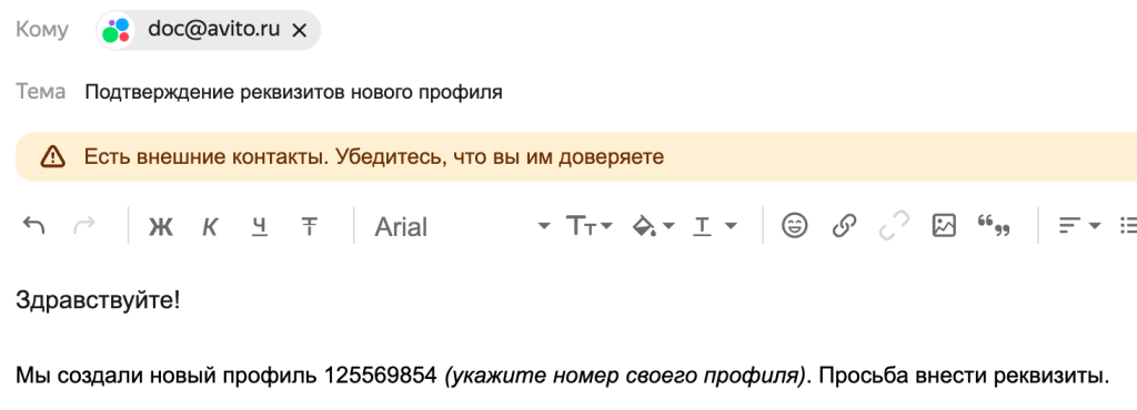 Чтобы ваш кабинет заработал в полную силу, нужно подтвердить юридические данные. Это делается вручную, через отправку письма в службу поддержки Avito.